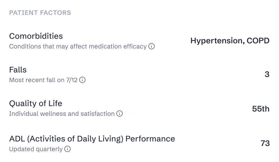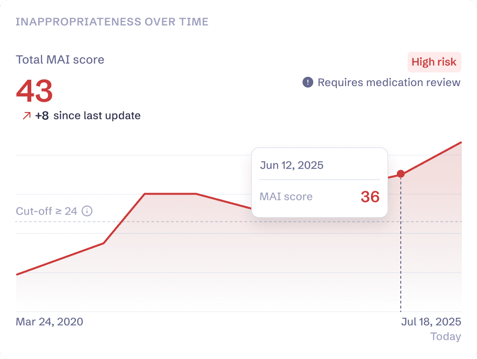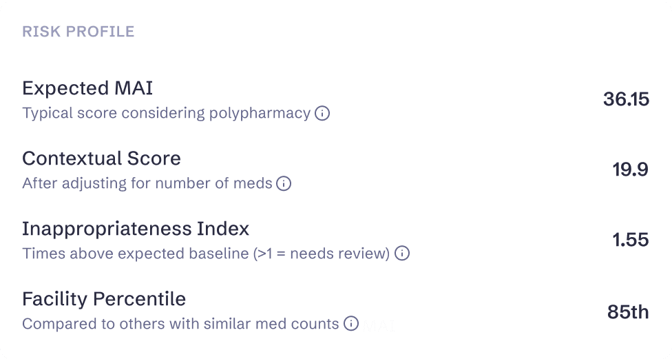 Gain visibility into facility-wide risks, guide deprescribing efforts, and track outcomes across your patient population.